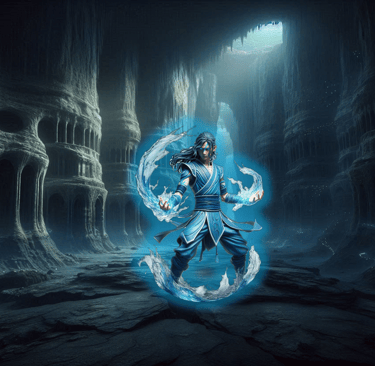 The Art of Water Weaving: Elarian's signature ability is his capacity to weave water rather than simply control it. He sculpts cascading waterfalls into defensive barriers, creates intricate tactical patterns, and manipulates everything from gentle brooks to devastating tsunamis. His influence extends to weather patterns across entire regions, and in the depths, he wields the crushing pressure of the abyss as a weapon.