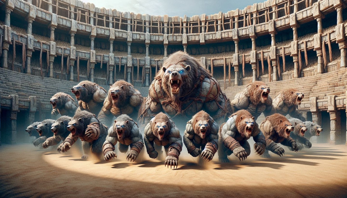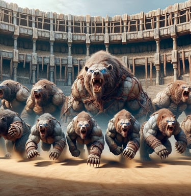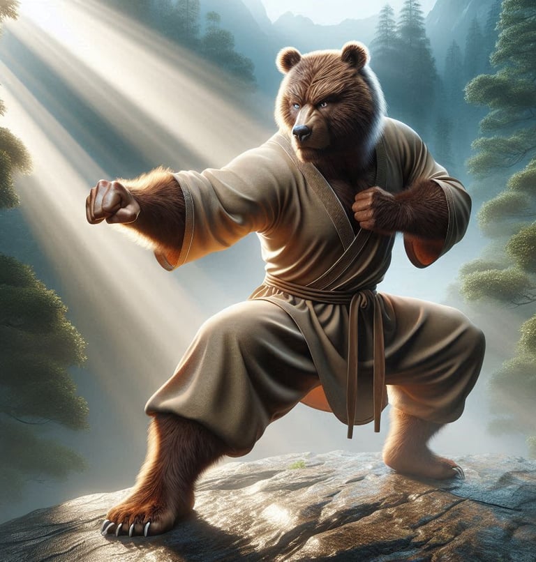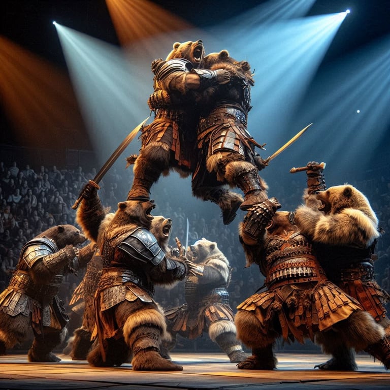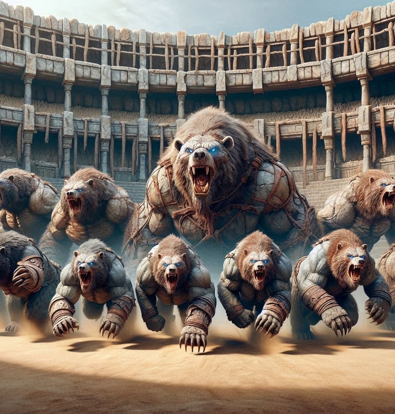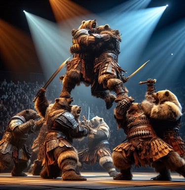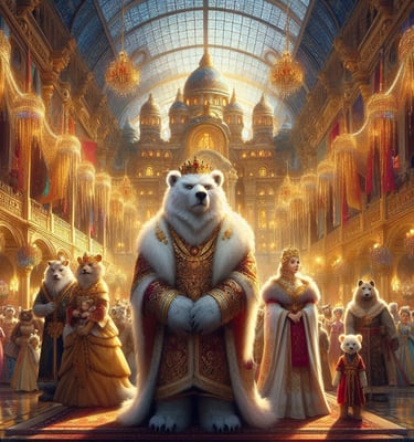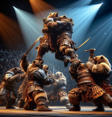 At the core of Kaltara's identity is its ancient and noble race: the descendants of mighty bears. These formidable beings are not just inhabitants but are the revered protectors and guardians of the kingdom, watching over their lands with unwavering loyalty. King Godricus (at the time of Draven the first!), a mighty bear of golden white fur, exemplified the leadership of this clan, showcasing both the physical prowess of a bear and the profound wisdom of a sage. The bear clan today lives in deep harmony with nature, possessing an innate understanding of the universe's intricate workings and a spiritual attunement to the rhythms of the earth and the whispers of the gods. Their legacy is etched into the very fabric of Kaltara, as evidenced by their participation in grand spectacles and demonstrations of martial arts, sorcery, and strategic combat, showcasing the inherent magic within every kingdom of Harmonya.