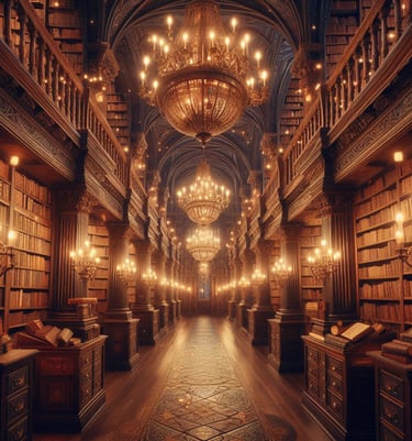 At the very core of Novus lies one of its most awe-inspiring features: The Enigmatic and Enchanted Library of Elders, also known as the Magnus Librarium. This is no ordinary collection of scrolls; it is a magical library that stretches across an expanse equivalent to twenty small villages, a sprawling labyrinth of knowledge and wonder. Its towering spires are crafted from shimmering, translucent stone that glows softly, inviting those who dare to seek enlightenment. Within its illustrious walls, books of all shapes and sizes whisper ancient secrets, their spines adorned with runes that shift and shimmer, responding to the pervasive magic in the air. Each tome holds its own essence—a blend of powerful incantations, mythical histories, and tales of legendary gods and ferocious warriors.
